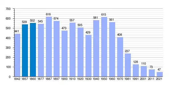 | Gráfica de evolución demográfica de Tórtoles[3] entre 1842 y 2021 |