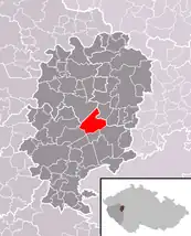 Se encuentra ubicada al noreste de la región, en la cuenca hidrográfica del río Berounka —un afluente izquierdo del río Moldava que, a su vez, lo es del Elba—, y cerca de la frontera con la región de Bohemia Central.[1]