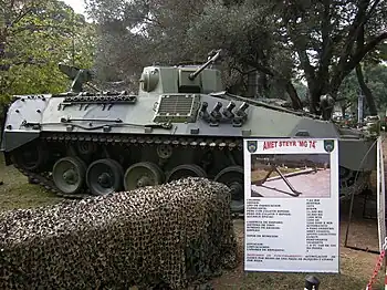 Los primeros ejemplares estaban armados con un cañón automático Rheinmetall MK 20 Rh 202 de 20 mm pero el resto fueron dotados con un Oerlikon KAD 18 de 20 mm además de una ametralladora MAG calibre 7,62 mm para defensa antiaérea, instalados ambos en una torre de dos plazas. También hay otra ametralladora del mismo calibre en el casco, en una pequeña torreta que se maneja por control remoto desde el compartimento de tropa. Gracias a su chasis agrandado puede transportar en su interior a 10 soldados que embarcan y desembarcan una rampa trasera abatible, y que pueden hacer fuego desde el compartimiento de tropa gracias a unos portillos ubicados en los costados del casco.