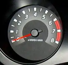 Un tacómetro (del griego τάχος, táchos, ‘rapidez’[1] y μέτρον, metron, ‘medida’), coloquialmente llamado cuentarrevoluciones, es un dispositivo que mide la velocidad de giro de un eje, normalmente la velocidad de giro de un motor. En el caso de los automóviles, el tacómetro indica el número de rotaciones completas que realiza el cigüeñal en un lapso de tiempo; o bien, el número de veces que un pistón sube y baja en su cilindro. Se mide en revoluciones por minuto (RPM).