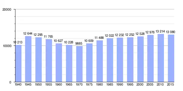 | Gráfica de evolución demográfica de Takamori entre 1940 y 2015 |