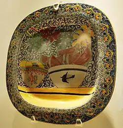 ![]() Platón de talavera de Marcela Lobo en exhibición en el Museo de Arte Popular, en la Ciudad de México | ||