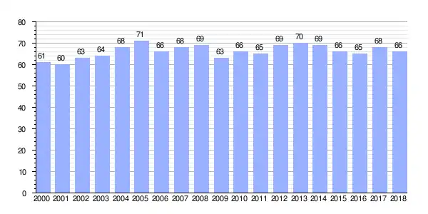 | Gráfica de evolución demográfica de Tarreo entre 2000 y 2018 |