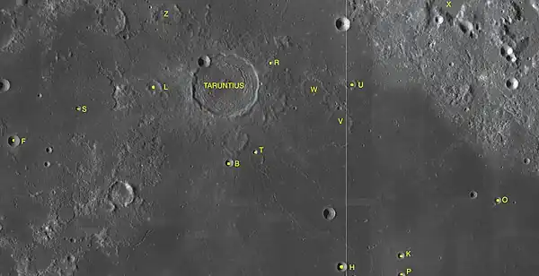 - Taruntius M - Véase cráter Lawrence.