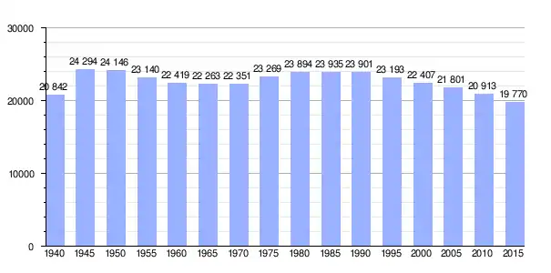 | Gráfica de evolución demográfica de Tatsuno entre 1940 y 2015 |