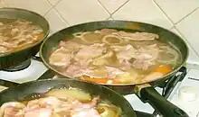 Como estofado es único en el sentido de que todos los ingredientes principales se cortan en rodajas, de forma que queden planos. Debido a esto, suele cocinarse en una sartén grande al fuego, y se sirve en un plato (y no en un cuenco). Las verduras empleadas suelen ser patatas, cebollas, zanahorias (cortadas a lo largo) y guisantes. Aunque suele hacerse con panceta ahumada, ocasionalmente se sustituye por ternera picada.