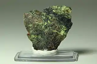 ![]() Tavorita Verde), con rockbridgeíta (negra( y hureaulita (rosa. Concesión Bode, Conselheiro pena, Minas Geraes (Brasil) | ||