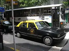 Taxi antiguo de La Plata. Están siendo reemplazados por los nuevos de color blanco con franja verde.[cita requerida]