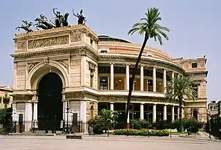 - «Teatro Politeama - Palermo» (en italiano). Virtual Sicily.it. Consultado el 15 de septiembre de 2016.