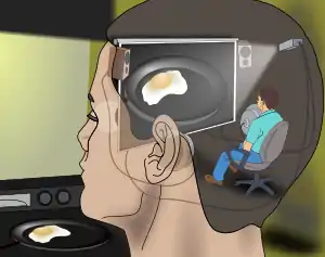 Dennett dijo que cuando se elimina el dualismo, lo que queda del modelo original de Descartes consiste en imaginar un diminuto teatro en el cerebro donde un homúnculo, ahora físico, desempeña la tarea de observar todos los datos de los sentidos proyectados en una pantalla en un instante particular, tomando decisiones y enviando órdenes.