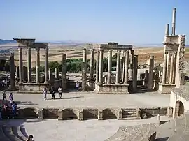 El teatro romano de Dougga se encuentra en el yacimiento arqueológico de Dougga en Túnez, fue construido entre el 168 y 168 y es de los mejores conservados en el África romana, podía acoger a 3.500 espectadores, cuando la ciudad contaba con unos 10 000 habitantes, en su periodo de mayor esplendor. Fue construido a costa de Publio Marcius Quadratus. Se compone de una cavea (19 gradas en tres plantas divididas por pasos de circulación), una orquesta y un escenario.