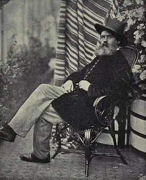 El periodista y escritor escocés Edmund Yates (1831-1894) escribió numerosas piezas teatrales,[55] entre ellas varias farsas que fueron representadas entre 1857 y 1860.[56] A principios de 1857 fue representada en el Teatro Adelphi Una noche en Notting Hill, obra de Nicolas Herbert Harrington y Yates; es descrita por este último como "una farsa desenfrenada y ridícula, pero sumamente divertida". Fue seguida por Mi amigo de Leatherhead, representada en el Lyceum el 23 de febrero de 1857; un sketch para German Reed y su esposa,[Nota 13] y una comedietta para el Princess's Theatre titulada If the Cap fits. Conjuntamente con Harrington escribió tres farsas más: Your Likeness - One Shilling, representada en el Teatro Strand en abril de 1858; Double Dummy (Lyceum, 3 de marzo de 1858), y ¡Golpéale, no tiene amigos! (Strand, 17 de septiembre de 1860).[57]