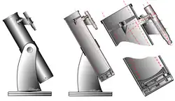 - Plataforma Poncet: el uso de una Plataforma Poncet (una montura ecuatorial de perfil bajo que consiste en una plataforma plana con un punto de rotación polar) debajo de la montura altazimutal ofrece a los usuarios el seguimiento ecuatorial necesario para una observación ininterrumpida e incluso una limitada capacidad de astrofotografía.