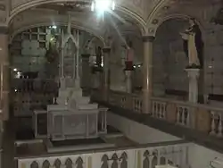 Teniendo el altar principal de frente, del lado izquierdo se encuentra la Capilla Penitencial, así como pintura monumental de la Ascensión del Señor cerca del coro, mientras que del lado derecho encontramos la Capilla del Santísimo con su Custodia Monumental y el Sagrario, al igual que una pintura monumental de la Asunción de María Santísima a un lado de un acceso interno a las criptas.
