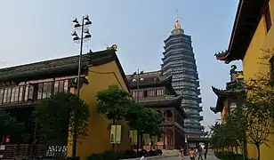 El Templo Tianning (en chino tradicional, 天寧寺; en chino simplificado, 天宁寺; pinyin, Tiānníng Sì), situado en Changzhou, provincia de Jiangsu, China, destaca por su gran pagoda de madera, la Pagoda Tianning (天宁宝塔/天寧宝塔). Su construcción comenzó en abril de 2002, y la ceremonia de apertura tuvo lugar el 30 de abril de 2007, en la que se reunieron cientos de monjes budistas.[1][2] Con trece plantas y 153,79 m de altura, es la pagoda más alta del mundo y la estructura de madera más alta del mundo,[1][2][3] superando a la anterior pagoda más alta de China, la Pagoda Liaodi, construida en 1055 con 84 m de altura. Aunque la pagoda actual fue construida en abril de 2007, los terrenos del templo y la pagoda tienen una historia de construcción y destrucción de 1350 años, desde la época de la Dinastía Tang (618–907).[1][2][3] La construcción de la pagoda fue propuesta por la Asociación Budista de China en 2001. Sin embargo, las donaciones de dinero para la construcción fueron un esfuerzo internacional. Líderes de 108 asociaciones y templos budistas de todo el mundo asistieron a la ceremonia de apertura del templo.[3]