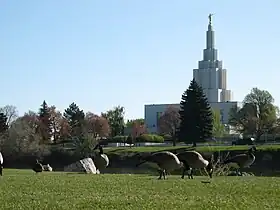 ![]() Templo de la ciudad de Idaho Falls, Idaho, ubicado en el centro de la ciudad, a menos de un kilómetro de las salidas de la Interestatal 15.[1] | ||
