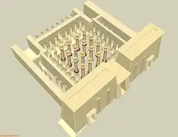 Este gran santuario se articuló con los cuatro proyectos del templo a los que las cuatro puertas principales daba acceso. Algunos autores hacen una conciliación directa del plan con el del templo de Amón-Ra de Karnak, que de hecho tiene similitudes con la de Ptah de Memphis29.