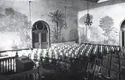 - Salón del mundo: ubicado en el pasillo superior, subiendo por una escalera de 35 escalones, es de forma elíptica y uno de los salones dispuestos de vitrales. Este salón es representativo de la expulsión del jardín del Edén de Adán y Eva. Las paredes cuentan con pinturas más dramáticas que el salón del jardín, con eventos sísmicos, animales en combates, entre otros.