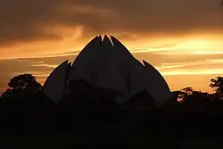 La Casa de Adoración Bahá'í en Delhi, India, popularmente conocida como Templo del Loto, por su forma de flor. El edificio fue completado en 1986 y sirve de templo madre en el subcontinente Indio. Ha ganado numerosos premios arquitectónicos y ha sido tema de cientos de artículos de periódicos y revistas.[2]