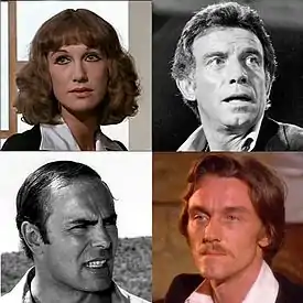 - John Steiner (n. 1941: actor inglés que trabajó unos años en la BBC, y después, en el cine, sobre todo en el italiano; algunas de las películas en las que trabajó son Bedazzled (1967), Tepepa (1968), 12 + 1 (1969), El bosque del lobo (1970), El caso está cerrado, olvídelo (1971), Masacre en Roma (1973), La invención de Morel (1974), Salón Kitty (1975), El valle de la muerte (1977), Calígula (1979), Action (1980), Carrera salvaje (1981), Escuela de carabineros (1984), Camping del terrore (1986), Notte d'estate con profilo greco, occhi a mandorla e odore di basilico (1986), Giulia e Giulia (1987) y Paprika (1991); trabajó también en la miniserie A.D. Anno Domini (1985).