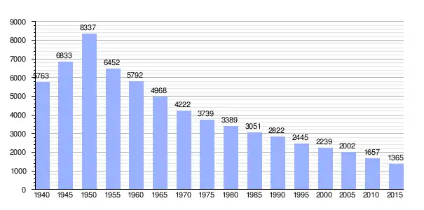 | Gráfica de evolución demográfica de Tenryū entre 1940 y 2015 |