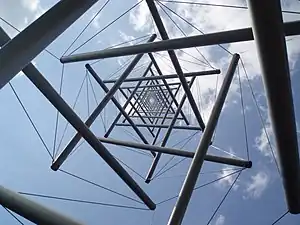 La tensegridad es un principio estructural basado en el empleo de componentes aislados comprimidos que se encuentran dentro de una red tensada continua, de tal modo que los miembros comprimidos (generalmente barras) no se tocan entre sí y están unidos únicamente por medio de componentes traccionados (habitualmente cables) que son los que delimitan espacialmente dicho sistema.[1]