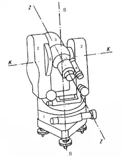 - Cuando el teodolito se encuentra perfectamente instalado en una estación, el eje vertical (o eje principal) (S-S) queda perfectamente vertical.
