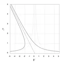 Parece que se puede producir una inversión del sentido del flujo localmente. En consecuencia, el intervalo comprendido entre y debe ser retirado del dominio de validez de las fórmulas obtenidas: