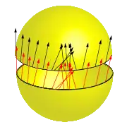 Para el desarrollo algebraico formal de las demostraciones expuestas, se puede tomar, por ejemplo, como un punto corriente de la esfera y el campo de vectores; a continuación se parametriza la esfera en coordenadas polares (suponiendo un radio 1):