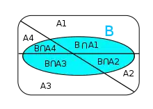 Por hipótesis tenemos una partición del espacio muestral . Por lo tanto el suceso se puede escribir como