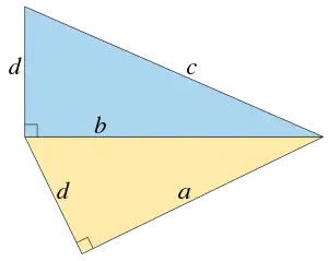 El teorema del triángulo rectángulo de Fermat es una prueba de no existencia en teoría de números, publicada en 1670 entre los trabajos de Pierre de Fermat, poco después de su muerte. Es la única prueba completa dada por Fermat.[1] Tiene varias formulaciones equivalentes, una de las cuales fue enunciada (pero no probada) en 1225 por Leonardo de Pisa. En sus formas geométricas, dice:
