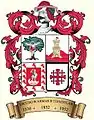 El escudo está rodeado de lambrequines o follaje heráldico de hojas de acanto que descienden por ambos flancos hasta la punta del blasón. Bajo el escudo una cinta con la inscripción: Escudo de Armas de Tepatitlán y las fechas 1530 - 1852 - 1952 intercaladas con dos cruces de Malta de gules (rojo).