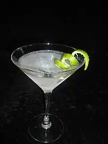 Un martini servido straight up, con un twist como garnish.