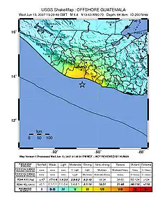 El terremoto de Guatemala de 2007 ocurrió el 13 de junio a las 13:29:46 hora local. El epicentro se localizó en el Océano Pacífico, al sur de Puerto Quetzal, a unos 115 kilómetros (71 millas) al sur-suroeste de Ciudad de Guatemala.