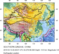 - Magnitude 6.9 - SOUTHERN QINGHAI, CHINA Archivado el 17 de abril de 2010 en Wayback Machine., usgs.gov, accessed 13 de abril de 2010