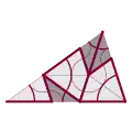 - El rombo grueso T tiene ángulos de 72, 108, 72 y 108 grados. El rombo T podría ser bisectado a lo largo de su diagonal mayor para formar un par de triángulos de Robinson obtusos.