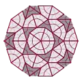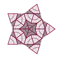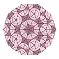 En 1996 la matemática alemana Petra Gummelt demostró que un equivalente de cubrimiento a la teselación de Penrose podría ser construida al cubrir el plano con una baldosa simple decagonal[8] si dos tipos de superposición eran permitidos. Este nuevo enfoque se denomina 'cubrimiento' para distinguirla de la 'teselación' no superpuesta. La teselación decagonal es decorada con figuras coloreadas y la regla de cubrimiento permite solo la superposición de estas decoraciones.
