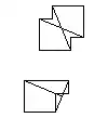 Un conjunto alternativo de teselados, también descubierto por Ammann, y denominado "Ammann 4" por Grünbaum y Shephard,[1] consta de dos piezas no convexas con bordes en ángulo recto. Uno de ellos consta de dos cuadrados superpuestos sobre un cuadrado más pequeño, mientras que el otro consta de un cuadrado grande unido a un cuadrado más pequeño. Los siguientes diagramas muestran las piezas y una parte de los teselados.