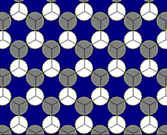 El mosaico de 3 colores es un teselado generado por permutoedros de orden 3.