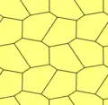 ![]() Teselado pentagonal tipo 4 con superposiciones de hexágonos semiregulares (cada uno abarcando 4 pentágonos). |