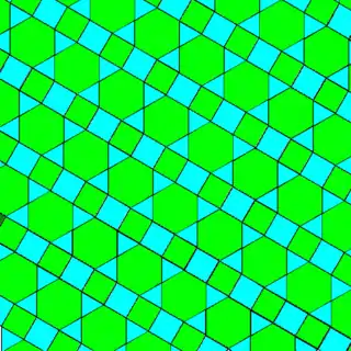 - 32.4.12 - no uniforme, hay dos tipos de vértices: 32.4.12 y 36
