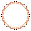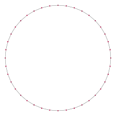 - Finalmente, transferir el segmento E1E40 (longitud del lado a) repetidamente en sentido antihorario en el circuncírculo hasta obtener un tetracontágono regular.