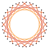 Muchos tetracontagramas isogonales también se pueden construir como truncamientos más profundos del isodecágono {20} y los icosagramas {20/3}, {20/7} y {20/9} regulares. Estos también crean cuatro cuasitruncaciones: t {20/11} = {40/11}, t {20/13} = {40/13}, t {20/17} = {40/17} y t {20/19} = {40/19}. Algunos de los tetracontagramas isogonales se muestran a continuación, como una secuencia de truncamiento con puntos finales t {20} = {40} y t {20/19} = {40/19}.[6]