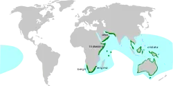 Océano Índico occidental | Pequeña y pálida, más grande y menos pálida en su zona sur | 2.550–4.500 individuos en África oriental y las Seychelles[12] |