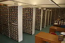 Las pilas, en las cuales cada caja contiene numerosas tiras de papel que contienen escrituras latinas, organizadas en categorías de uso por palabra