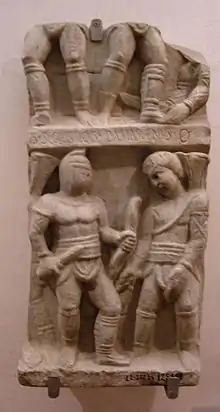 Gladiadores en un mosaico de la Villa Borghese, Roma, c. 320