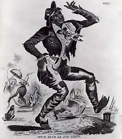 El personaje de Jim Crow interpretado por Rice era una descripción étnica según las ideas contemporáneas sobre los afroamericanos y su cultura. El personaje estaba basado en un pícaro folclórico llamado Jim Crow, que era muy popular entre los esclavos negros. Rice también adaptó y popularizó una tradicional canción de esclavos llamada "Jump Jim Crow".[3]