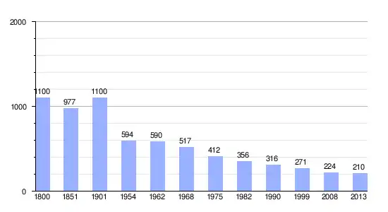 | Gráfica de evolución demográfica de Thoras entre 1800 y 2013 |