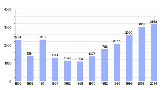 | Gráfica de evolución demográfica de Thorens-Glières entre 1800 y 2014 |