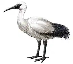 Viejos escritos describen como el plumaje era de color blanco, con las puntas de las alas y la cola negras. Un fósil de mandíbula superior mostraba que el pico era más corto y recto para un ibis. Con todo, se parecía mucho a un pequeño ibis sagrado, con alas y pico cortos.